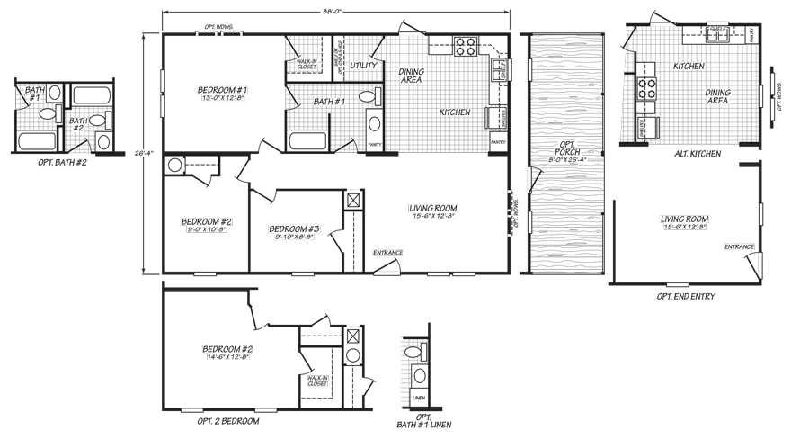 The Allenton model is manufactured by Cavco Rocky Mount and is part of the Blue Ridge Series. Click on the button below to view the available upgrades & options for this floor plan.